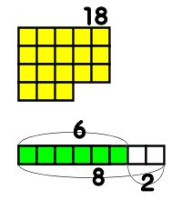 18まいのおりがみを同じ枚数ずつわけます。