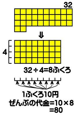 これを4こずつふくろに入れて、1ふくろを10円でうります。