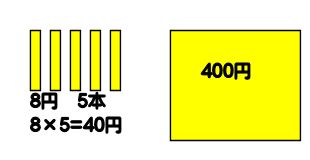1人にくばるえんぴつの代金(だいきん)は8×5で計算できます。