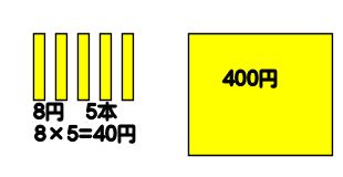 1人にくばるえんぴつの代金(だいきん)は、8×5=40円と計算できます。