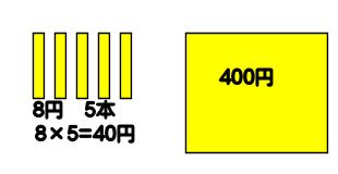 1人にくばるえんぴつの代金(だいきん)は8×5=40円です。
