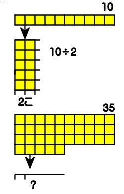 では、35円で買えるクリの数を求める式を、10÷2を使って考えましょう。