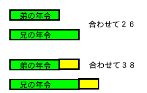 また、弟が兄の今の年令と同じ年になったとき、二人の年令を足すと38になります。