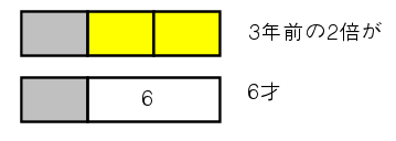 この2つを比べると、3年前の年齢の2倍は6才になる。