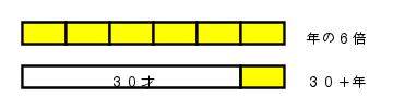 2人の子の年令の3倍だから、あわせて年令の6倍だ。