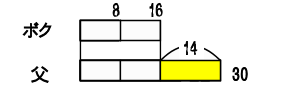ボクは8才、その2倍を計算ずみと考えるには、父から何才引けないい?