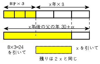 まず、x年後のぼくの年が(8+x)×3=24+3xになる