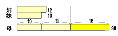 現在、姉は12才、妹は10才、お母さんは38才です。