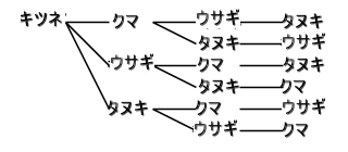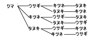 クマ ウサギさんが先頭の場合を書き出してみよう。