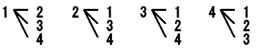 これは 4通り。その1つ1つの場合にサブリーダーの選び方は何通りあるの