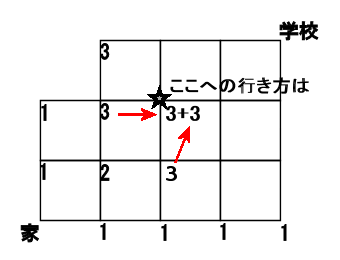 だからそこを通って来る方法が3通り。