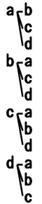 一番最初に並ぶのは、aまたはb,c,dの4通りです。