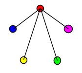 赤と青と黄色と緑と紫の5枚の折り紙が1枚ずつあります。