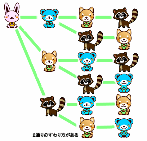 ウサギさんが運転手のとき、後のすわり方は全部で何通りだろう。