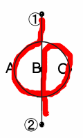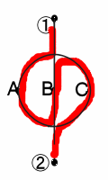 ①から②まで、A,BCを1回ずつ通って、道をたどる方法は、何通りあるでしょう。