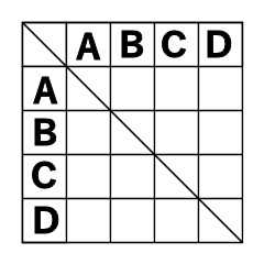 A,B,C,Dの4チームが、トーナメントで試合をします。