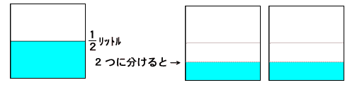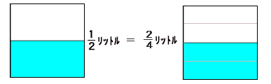 「良くわかったね。2分の一リットルは4分の2リットルと同じなんだ。」