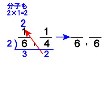 1/6と1/4 をなるべく小さな分母に通分しましょう。