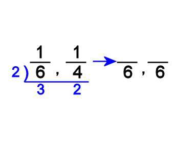1/6と1/4 をなるべく小さな分母に通分しましょう。