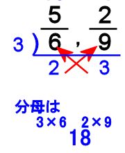 5/6と2/9 をなるべく小さな分母に通分しましょう。