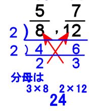 5/8と7/12 をなるべく小さな分母に通分しましょう。