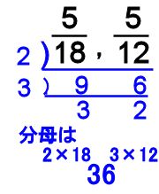 5/18と5/12 をなるべく小さな分母に通分しましょう。
