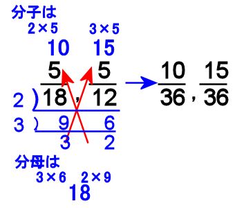 5/18と5/12 をなるべく小さな分母に通分しましょう。