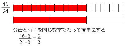 | 16 | を約分して、簡単な分数にしましょう。 | |||