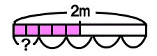 5人で、2mのテープを同じように分けると一人分は何mでしょう。