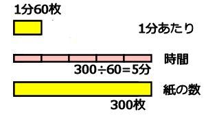 1分当たり60枚だから、300の中に60がいくつあるか考えれば時間が出る。