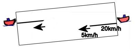 20+5で、川岸から見ている船の速さが分かります。
