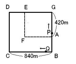 PさんがA地点から、Q君がB地点から、二人同時に出発した場合は、