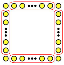 下図ように、1辺にn個のボールが正方形の形に並んでいます。