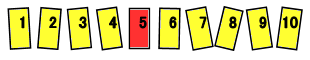赤色のカードは、右から何番目でしょう。