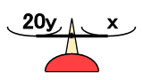20y=x というのは「20ワイ イコール エックス」 と読む。これは、20y と x が同じということだ。