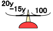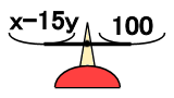 x-15y=100 これは「エックス マイナス 15 ワイ イコール 100」と読む。てんびんで考えると、こんなふうになる。