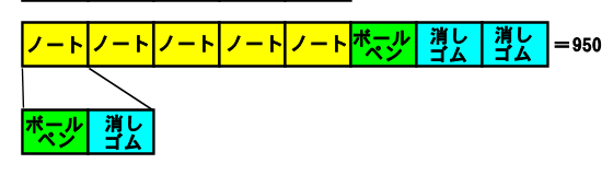 消しゴム1個、ボールペン1本、ノート1冊の値段を求めなさい。
