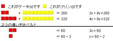 ケーキとプリン1個の代金は それぞれ何円でしょう。