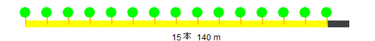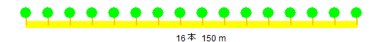 150メートルの道路に、10メートルおきにサクラを植えます。