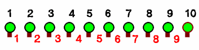 クマ 10ほんの桜を植えるんだから、木と木のの間は9しかない。