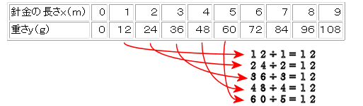 クマ 横に見て、xが1増えたときもyは12増えたよ。