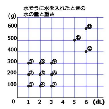 量が1Lのときは、グラフの点はどこに打ちますか。
