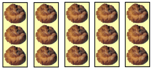かけ算ができると、もっとたくさんシュークリークがあって、もっとたくさんハコがあっても、計算がはやくできます。