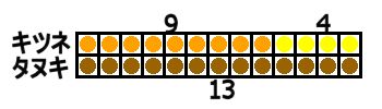 □(タヌキのとった数)は13です。