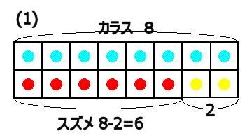 | スウメのとった数 | = | カラスのとった数-2 |