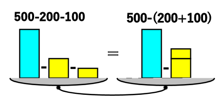 500円で、100円のえんぴつと、200円のけしごむを買いました。