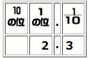 | 2.3 小数点を1つ右に動かすと 2 3. 小数点の右には何もないから小数点を消sと 2 3 23になった。 |