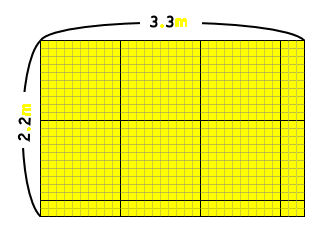 たて2.2m横3.3mの花壇の面積は何平方メートルでしょう。