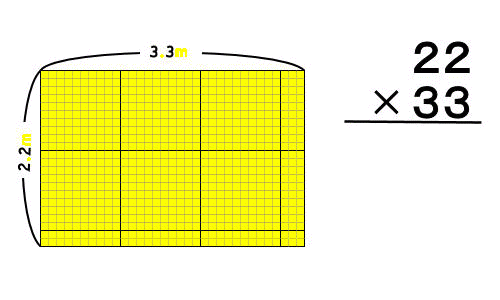 たて2.2m横3.3mの花壇の面積は何平方メートルでしょう。