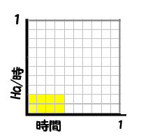 | 黄色くぬった部分が1つで、 0.01ヘクタールだ。 |